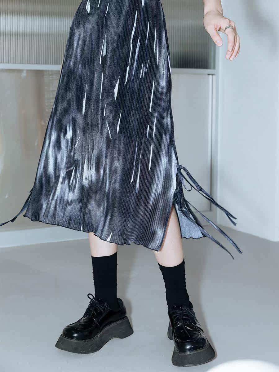 芍藥居设计「趁夜色未晚」高工艺压褶黑白泼墨感直筒半身裙热门设计联盟服务商