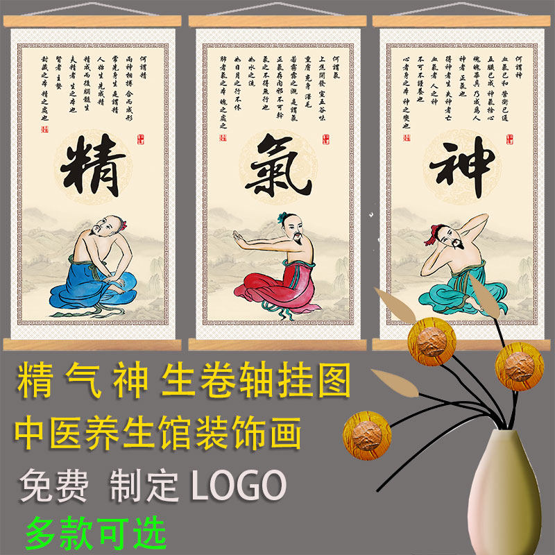 精气神中医养生字画理疗诊所养生知识挂图宣传画背景墙壁画字画热门设计联盟服务商