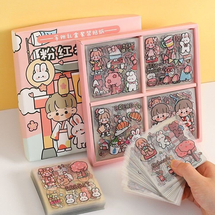 100张手H账贴纸套装PET可爱卡通手帐贴画素材装饰图案 保温杯贴纸热门设计联盟服务商