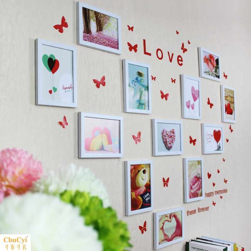 装饰品套装爱心组合型墙心框背景墙蝴蝶照片墙相框新房相片墙热门设计联盟服务商