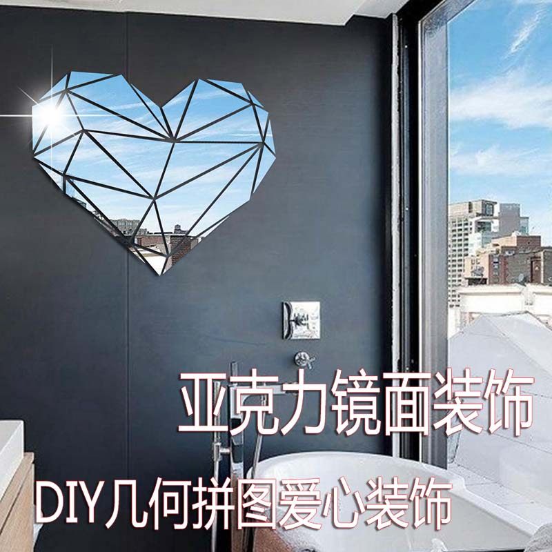 3d立体亚克力镜面装饰墙贴家居装修背景贴画几何拼图爱心墙面装。热门设计联盟服务商