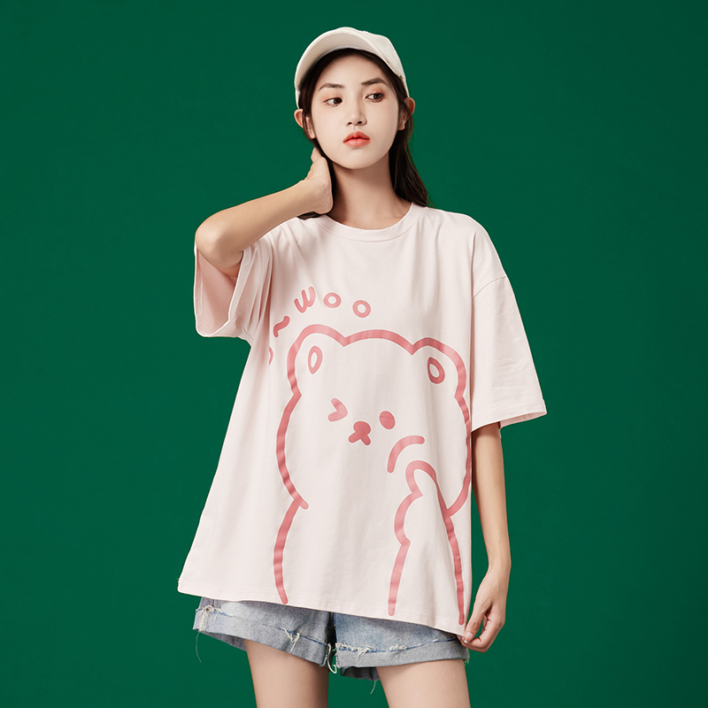 2021新款纯棉T恤女半袖卡通小熊动漫设计感学院风宽松韩版短袖热门设计联盟服务商