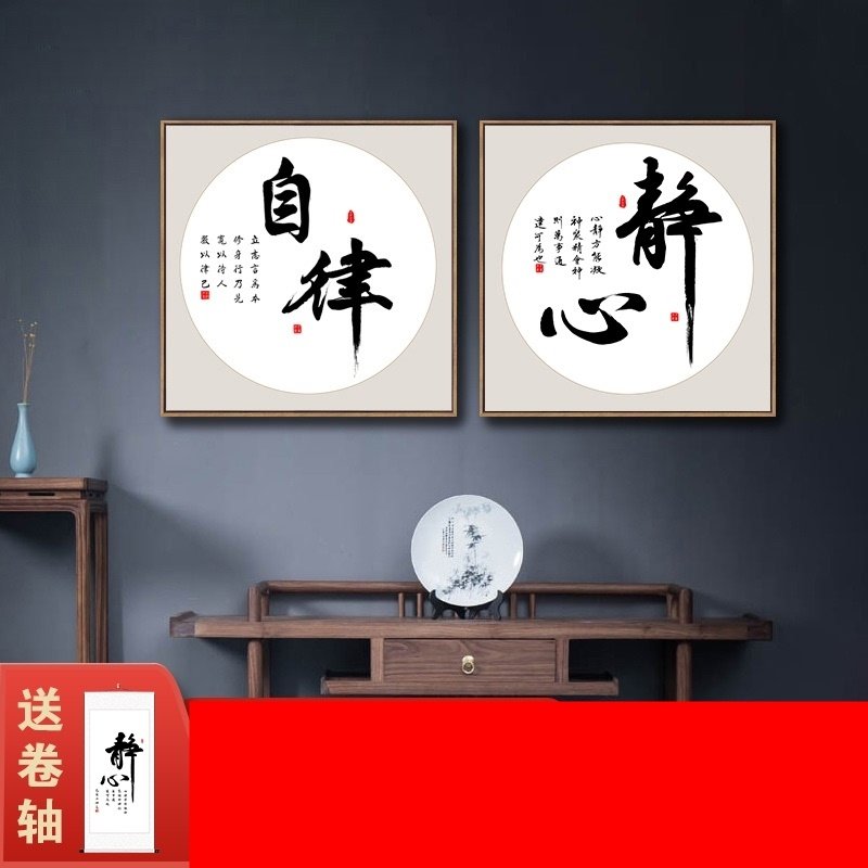 简约会客厅办公室装饰画书法厚德载物挂画会所背景墙壁画兴隆茶室热门设计联盟服务商